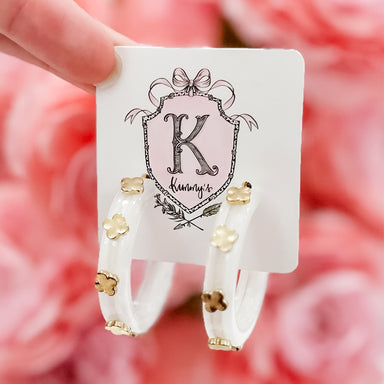 Clover studs are a fan favorite here at Kimmy’s, so we knew y'all would love a white iridescent pair. They are lined in a dipped gold for a timeles...